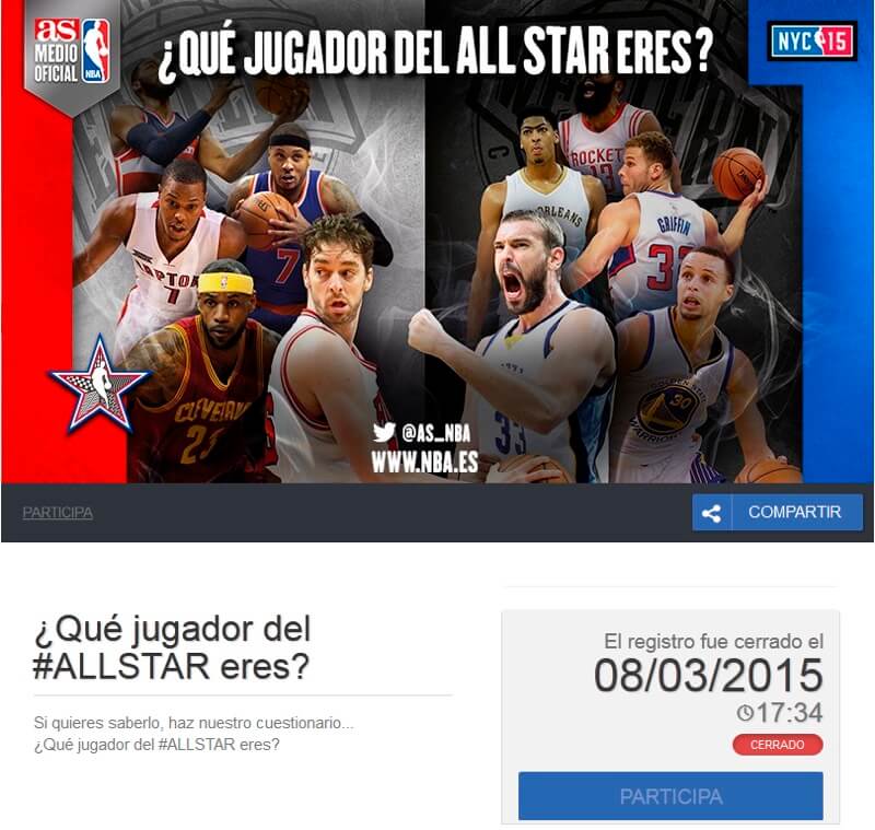 During the period of the 2015 NBA All-Star championship, the AS newspaper organized a quiz, where users could find out which All-Star player they most resembled, based on their abilities and physical appearance. Participants had to take a simple test, and, depending on their answers, the application showed them with a personalized result, including a photo of one of the players.