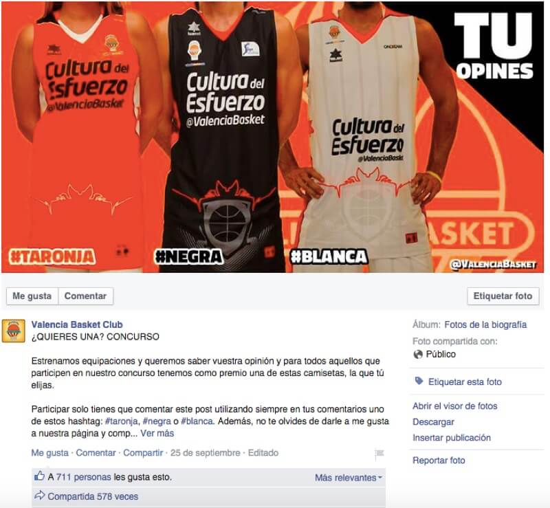 Si tienes poco tiempo y necesitas hacer una acción más sencilla, puedes inspirarte en la acción que el Valencia Basket realizó a modo de encuesta sencilla, pero muy viral, a través del muro de su perfil de Facebook.